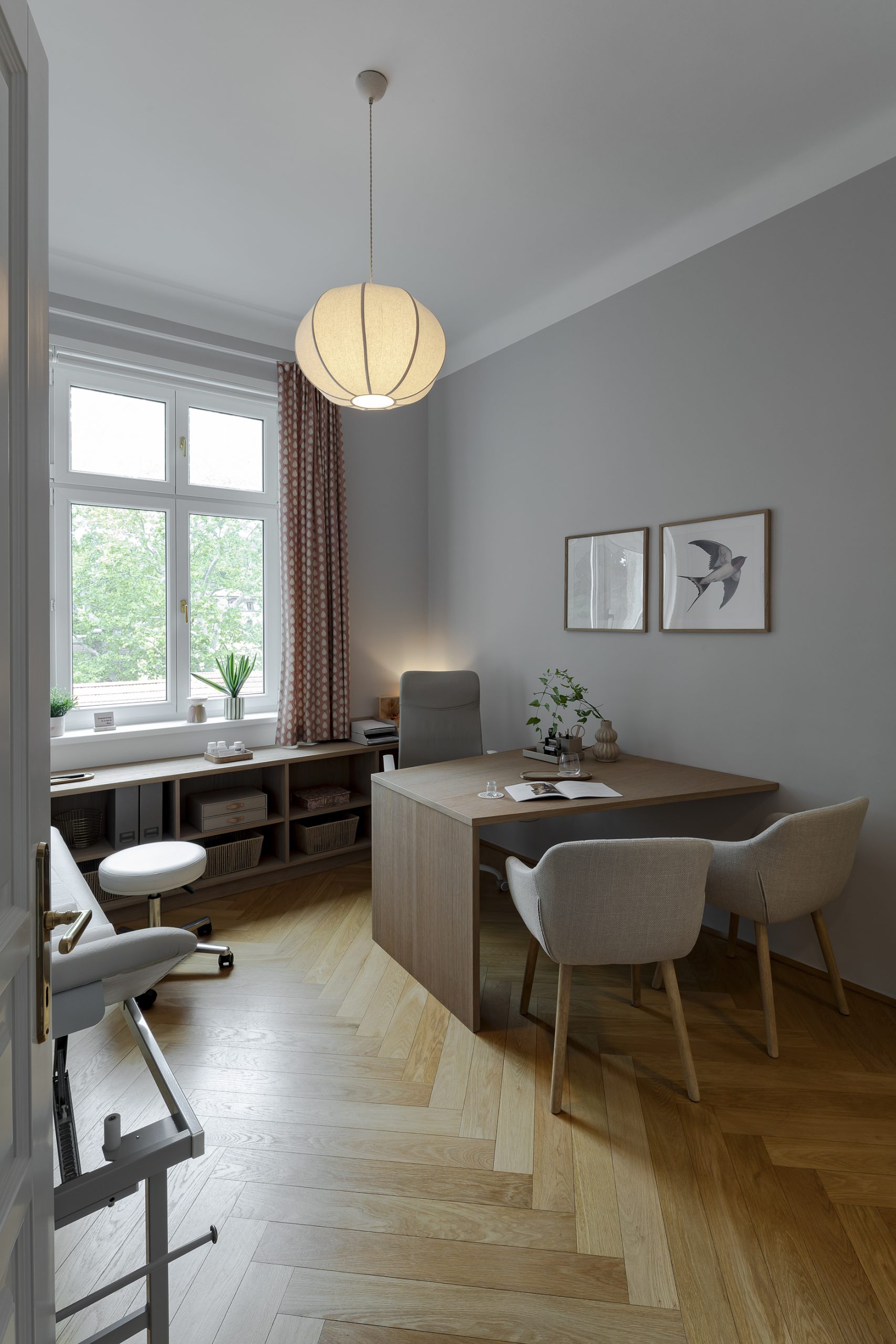 In einer ehemaligen Wohnung ist ein Ort für medizinische Betreuung entstanden, der mit Konventionen bricht – bewusst wohnlich, beruhigend und fein aufeinander abgestimmt.